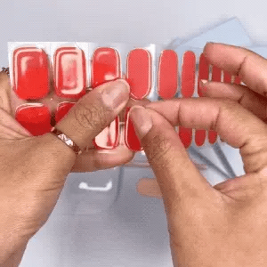 - Positionnez la bande sur l'ongle en la centrant soigneusement.